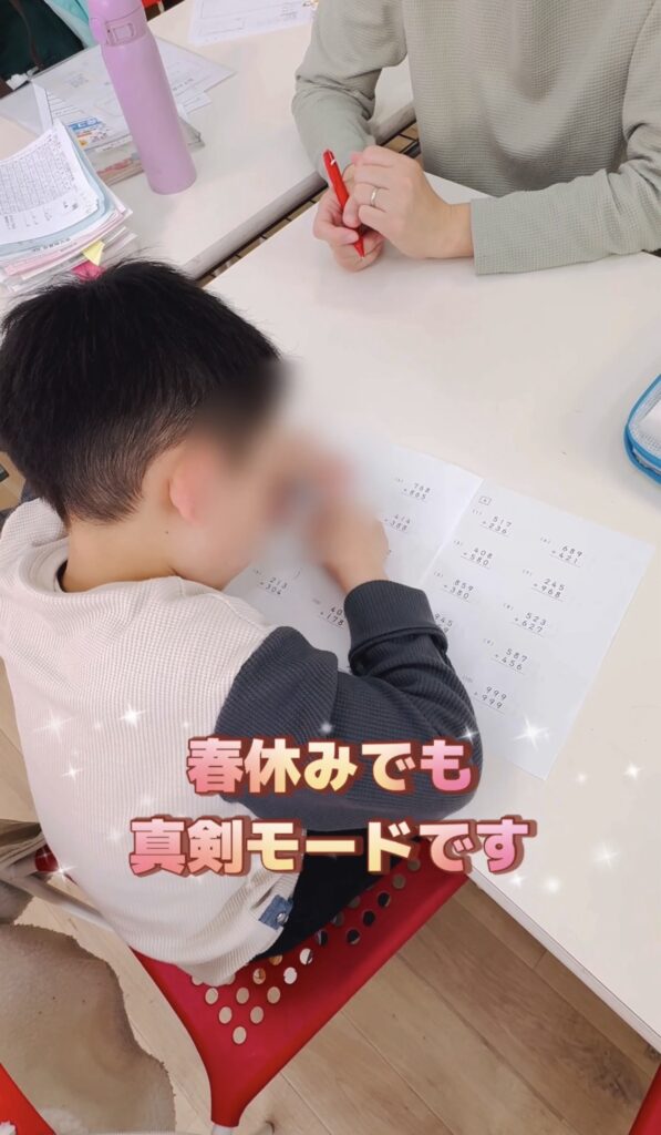 あすか会みらい教室では、この春休みも多くの子どもたちが真剣な表情で学習に取り組んでいます。