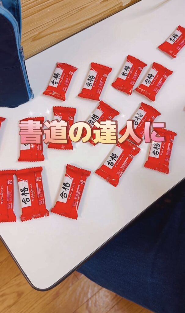 キットカットを教室に持ち帰り、習字の達人のスタッフに