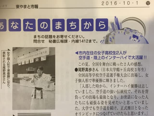 光ヶ丘教室OGのMちゃんが、インターハイ(空手女子個人形)で準優勝に輝きました