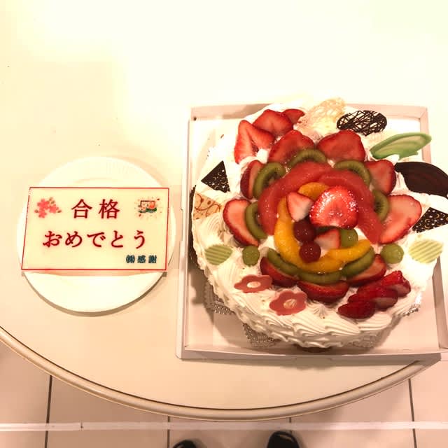 ▲合格お祝い会の特製ケーキです🌸合格おめでとうのチョコの下にはイチゴがたっぷり入ってました😄