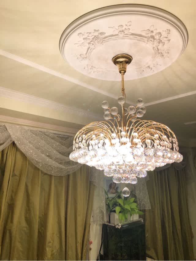 シャンデリアのクリスタルの外せるところは外し、一個一個丁寧に磨きました