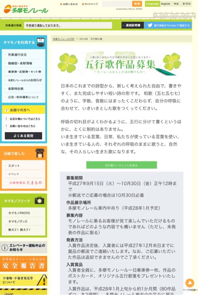 わたしたち地元民にとってなじみのある、多摩都市モノレールが、電車の車内中吊りに載せる作品を募集しています
