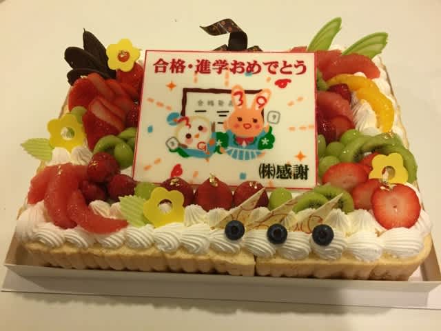 アムールさんの特注の合格記念ケーキには、多くの生徒、保護者が写真を撮りたいと集まってきました。