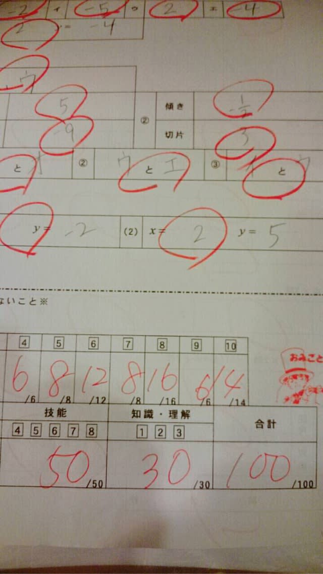 ▲中2定期テスト数学で、100点!