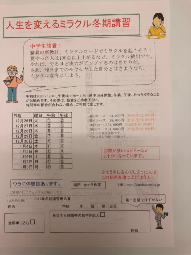この冬、人生を変えるミラクル冬期講習講習が始まります。