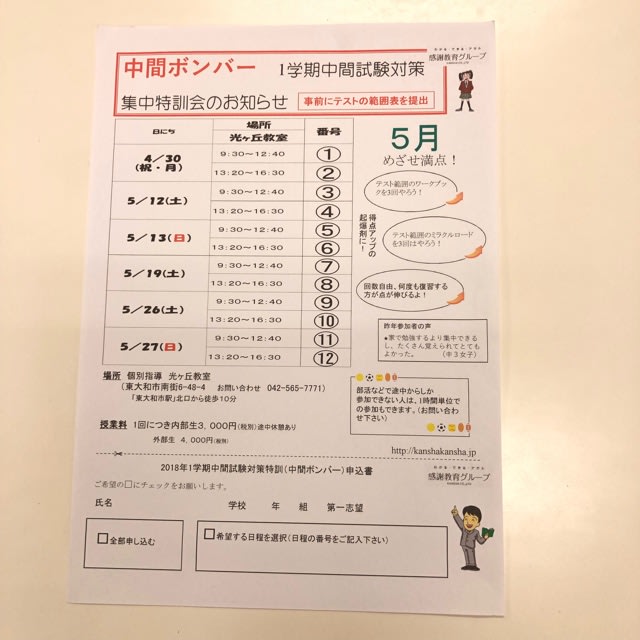 ☆東大和市の塾 個別指導 光ヶ丘教室(東大和市駅徒歩10分)