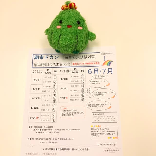 こんにちは♪東京都東大和市の学習塾、個別指導光ヶ丘教室の佐藤民子です♪