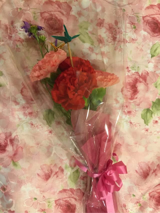 スタッフの先生がたと、保護者の方々が前日にご相談して、とても素敵な花束をくださいました。