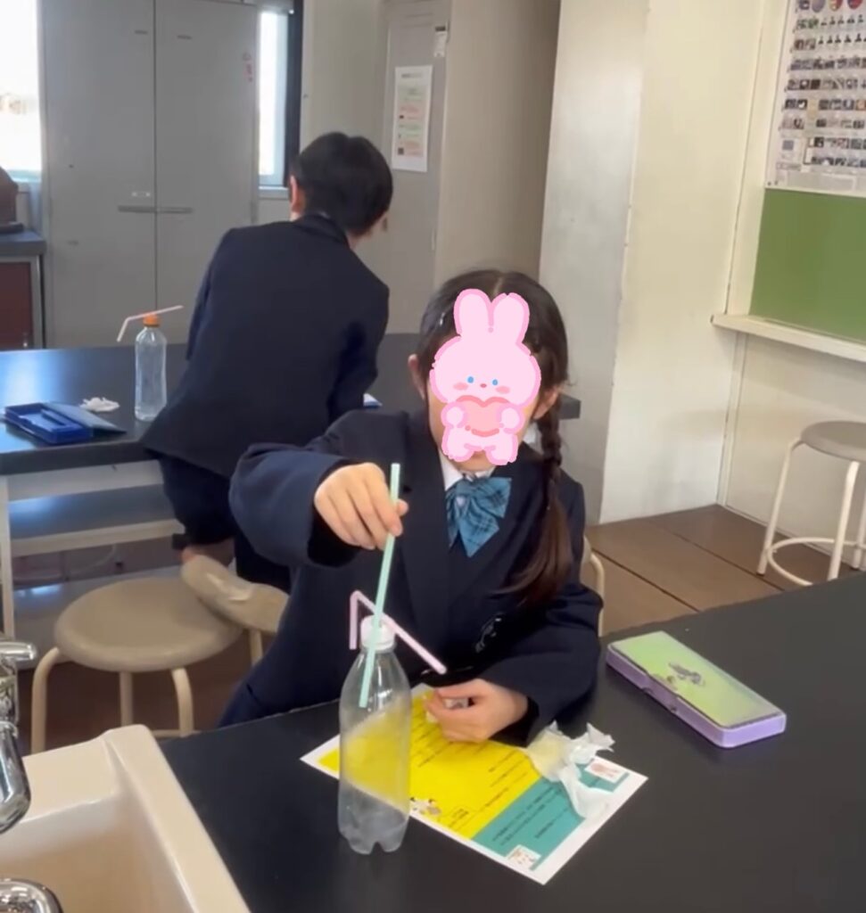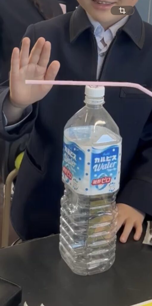 子どもたちは、ペットボトルの周りでストローをクルクル回しながら大興奮。