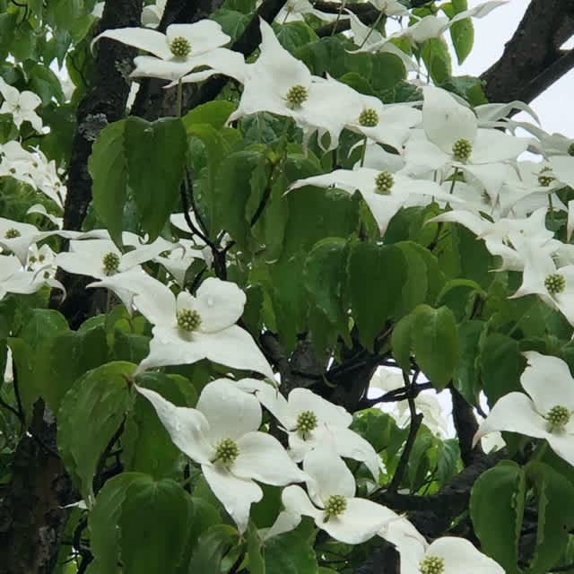 ▲雨の水滴が光る鮮やかなヤマボウシ!