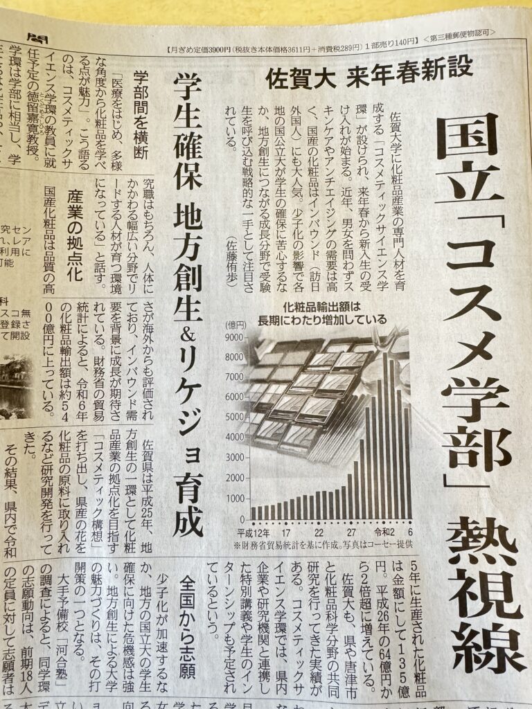 2026年4月国立佐賀大学に「コスメティックサイエンス学環(仮称)」が誕生します。