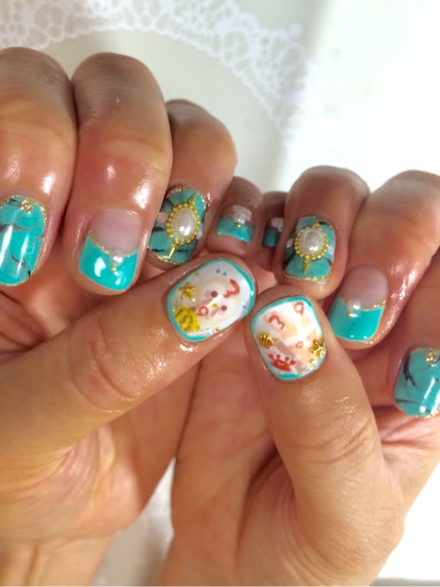 ▲サンちゃんキューちゃんの夏ネイルです♪