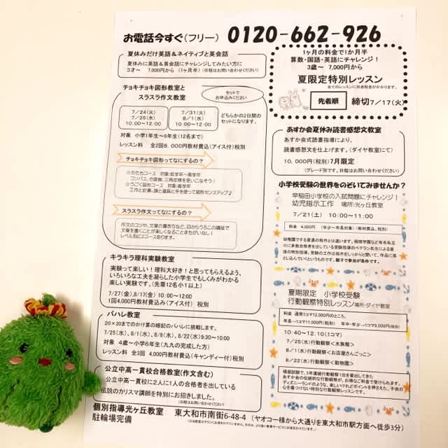 こんにちは♪東京都東大和市の学習塾、個別指導光ヶ丘教室の佐藤民子です♪