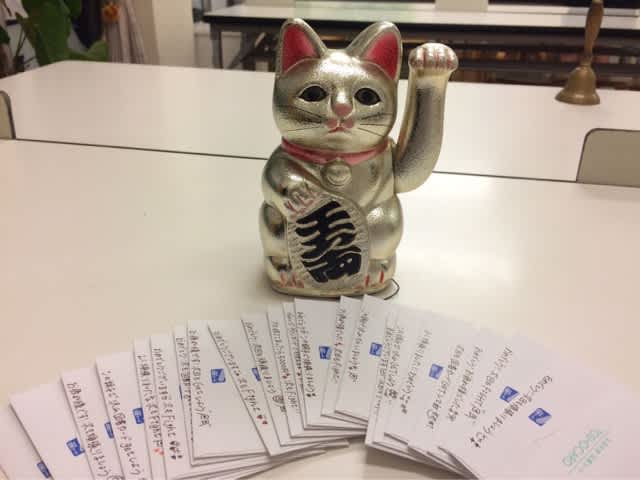 当教室では定期試験の点数のいい人、著しく頑張って点数を上げた人に図書カードをプレゼントしています。