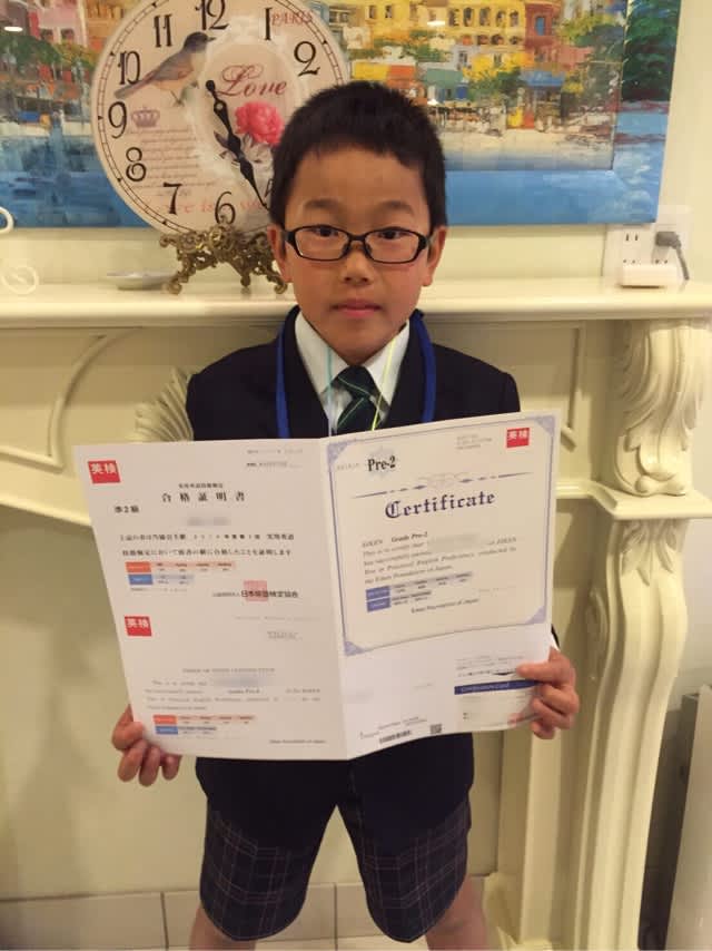 教室独自の英語システムと、英検専門のレベルの高い個人レッスンの先生、そして、ご家庭のご協力による、快挙です