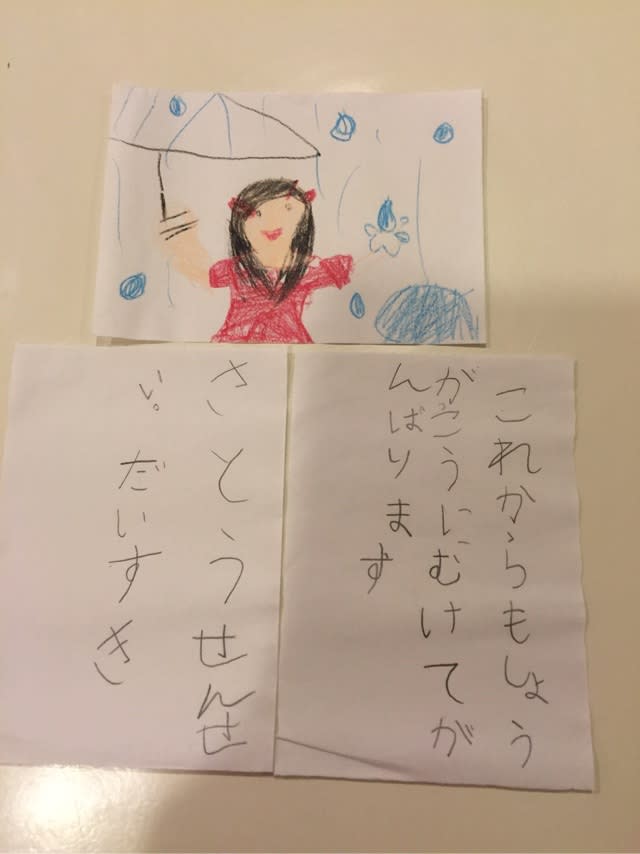 先日、年長さんのレッスンにて、かわいいお手紙をいただきました