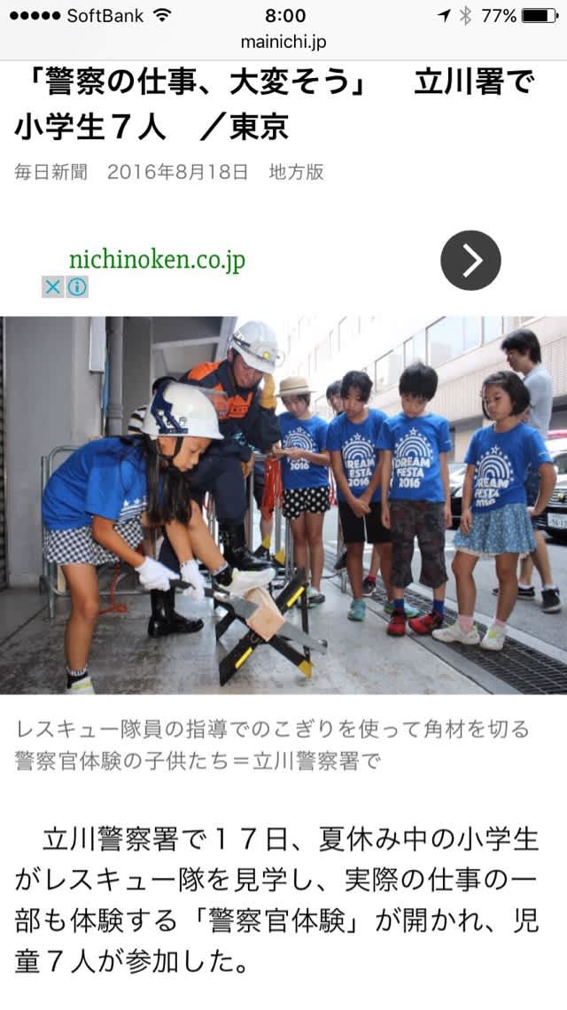 立川青年会議所が企画した『キッズドリームチャレンジ2016』の一環で子供達が地域で働く人たちへの理解を深めるために行われました