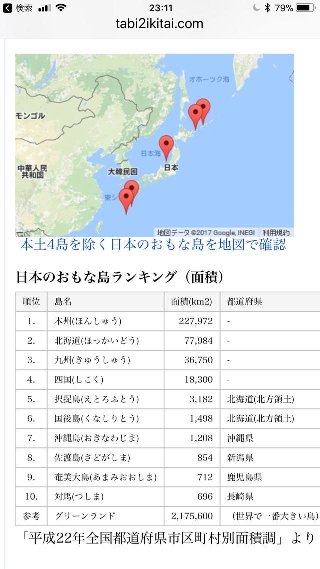 「先生、日本で1番大きい島はどこですか?本州とか北海道、九州、四国をのぞいて。」