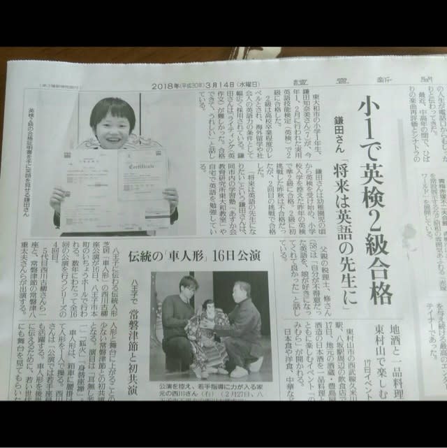 小1で英検2級に合格したことは以前ここでお知らせしましたが、そのことが本日読売新聞の朝刊に掲載されました。