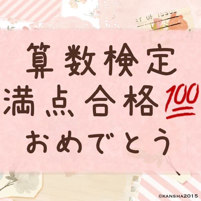 ▲算数検定満点合格おめでとう