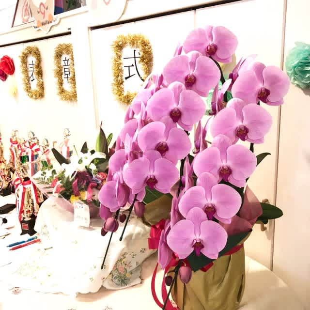 表彰式当日に保護者の方から立派なランの花をいただきました
