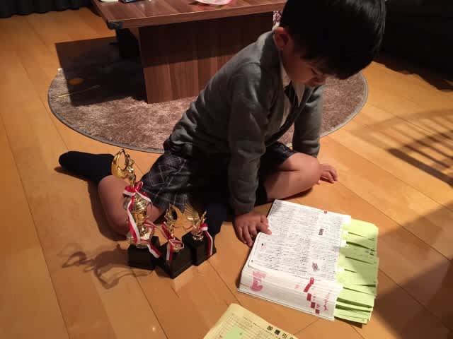 サッカーの試合に行かなくて、本当よかったです(^ ^)去年のトロフィーまで持ち出して、 並べて喜んでました