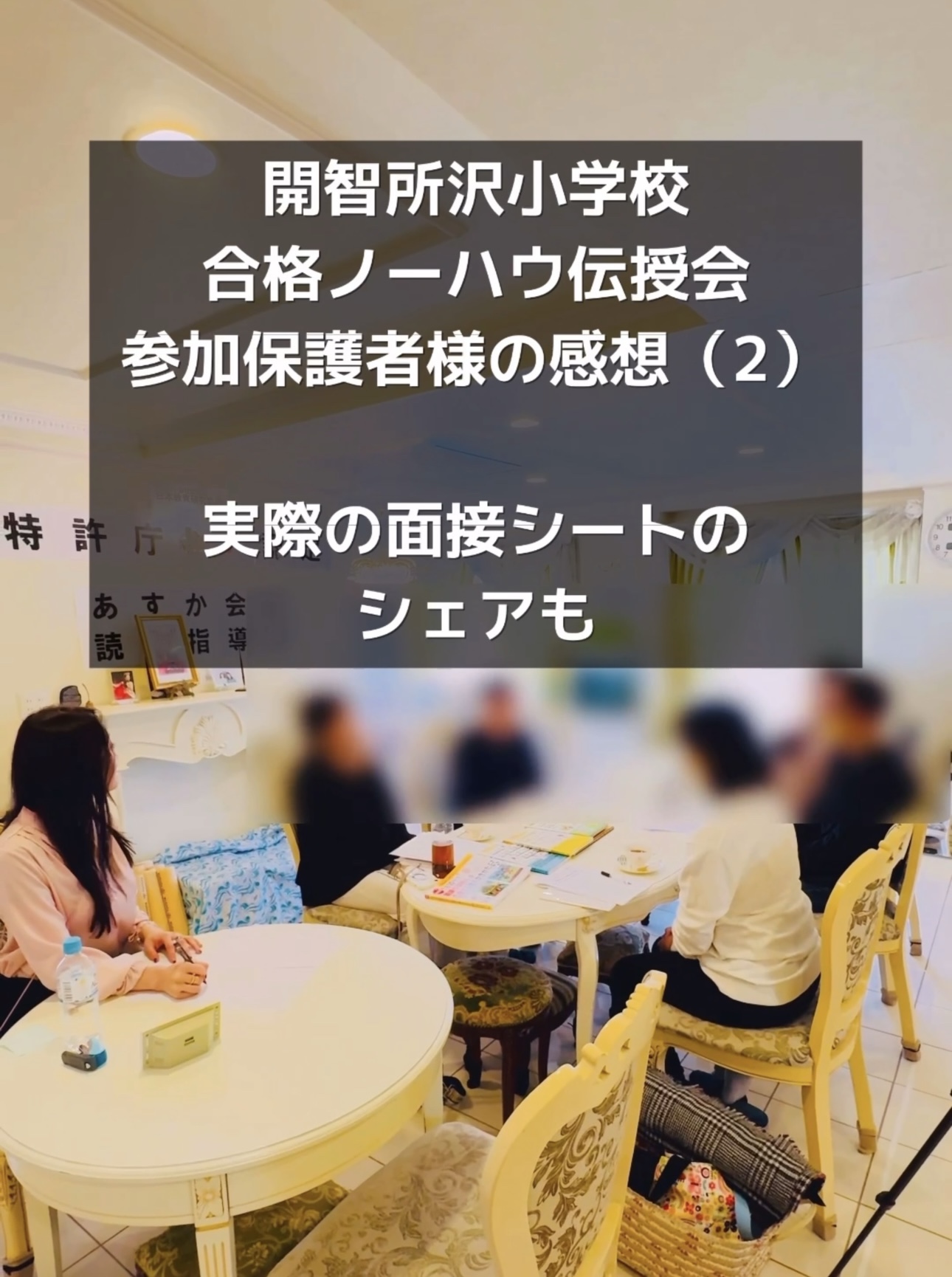 【所沢小学校合格ノーハウ伝授会 参加保護者様の感想(2)実際の面接シートのシェアも】