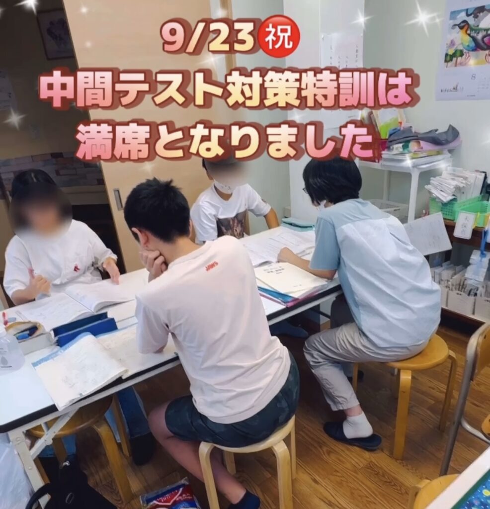 📢 9/23㊗️ 中間テスト対策特訓は満席となりました!