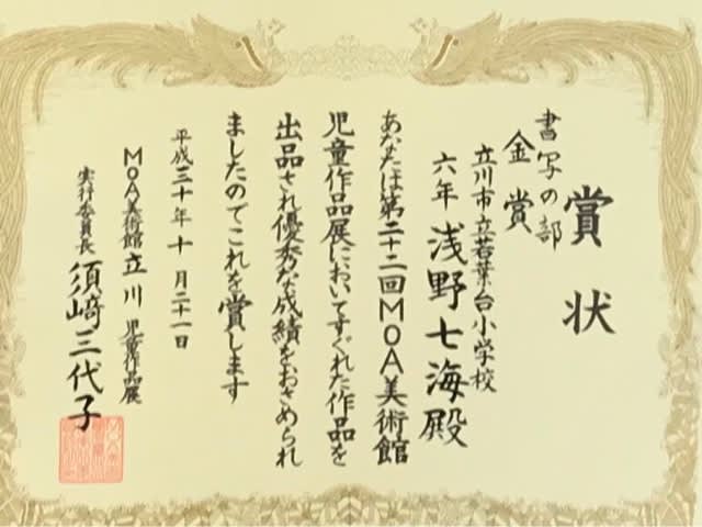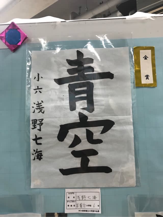 当教室の生徒が、MOA美術館児童作品展において書写の部で金賞を受賞しました