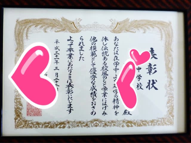 ▲Nくんがもらった表彰状